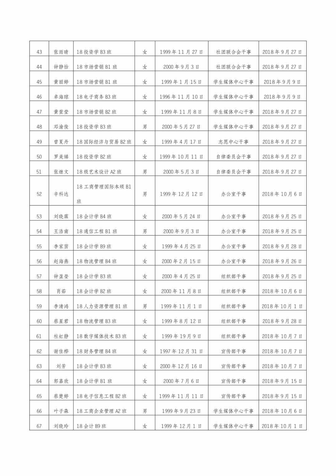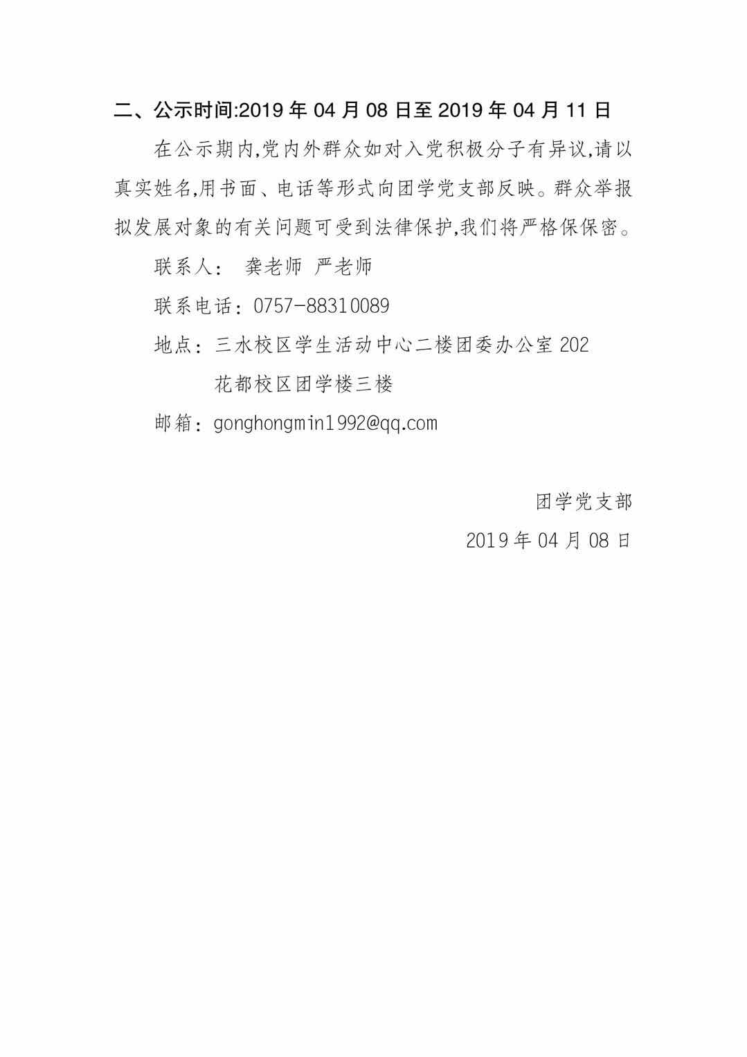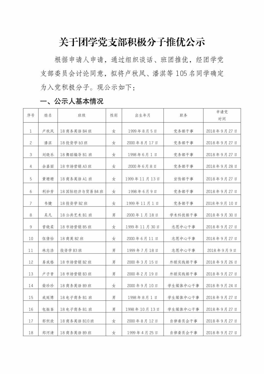 关于团学党支部积极分子推优公示