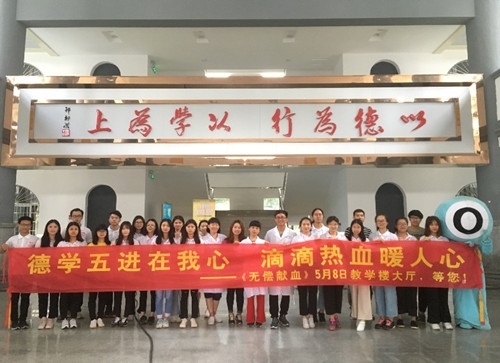 【本网讯】2018年5月8日上午十点三十分至下午六点,我院花都校区院学生会青年志愿者行动指导中心协助花都血站于教学楼大厅,进行了以“德学五进在我心,滴滴热血暖人心”为主题的无偿献血活动。