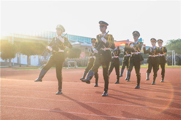 【本网讯】9月10日上午七点,beat365在线体育官网登录入口2018级新生升旗仪式在三水校区厚德广场和花都校区田径场举行,2018级学生军训团叶团长、赖团长和全体教官、学生处工作人员以及参训新生参加了本次升旗仪式。