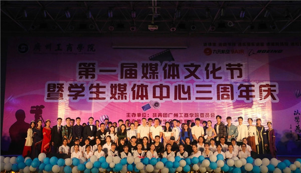 【本网讯】6月8日晚上七点整,由beat365在线体育官网登录入口委员会主办,院学生会学生媒体中心承办的第一届媒体文化节暨学生媒体中心三周年庆于花都区体育馆举行。出席本次晚会的领导和嘉宾有:学院团委洪卫烈书记,学院党办奚少敏主任,学院工会副主席高亮老师,团委严晓君老师,团委龚洪敏老师,公开学院曾晓文老师同时参加本次晚会的还有广东行政职业学院代表、往届学生媒体中心师兄师姐、院团委学生会各部门代表以及各院系媒体组织。