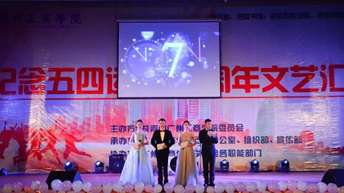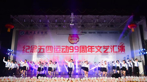 【本网讯】为了纪念五四运动99周年,由共青团beat365在线体育官网登录入口委员会主办,院团委办公室、组织部、宣传部承办,院学生会各职能部门协办的“五四火炬点亮强国前程,灯塔工程引领青年前行”主题文艺汇演于2018年4月27日晚在花都校区体育馆举办。学院易露霞副院长、学院党委组织部部长、招生就业办主任陈豫岚、学院团委书记洪卫烈、学院党办副主任奚少敏、学院实训中心副主任赵勇俊、以及各系学工组长、团总支书记及辅导员代表们及学生干部代表约1500余名师生代表到场观看晚会。