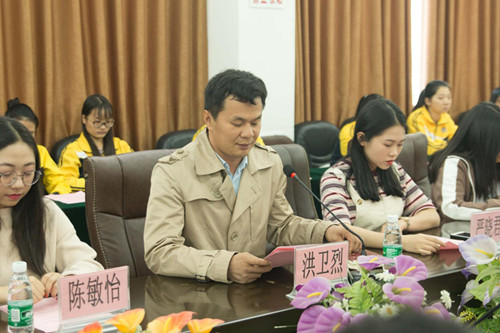 【本网讯】为了进一步弘扬志愿精神,更好地传递志愿服务力量,2018年4月8日下午,在我院花都校区办公楼101召开了广州花都摇滚马拉松志愿者座谈会。参与本次座谈会的有团花都区委雷达副书记、我院团委洪卫烈书记、团花都区委周运芽老师、团委严晓君老师、团委陈敏怡老师以及各位广州花都摇滚马拉松志愿者代表。本次座谈会由我院团委洪卫烈书记主持。