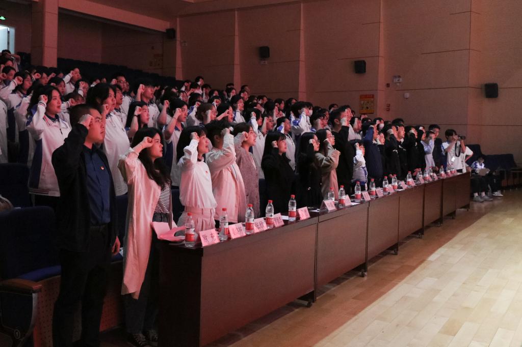 【本网讯】为进一步学习贯彻党的二十大精神,深入贯彻习近平总书记关于青年工作的重要思想,激发新团员的责任感和使命感,使共青团真正成为团结教育青年的坚强核心。校团委于11月23日晚在三水校区千人影视厅隆重举行beat365在线体育官网登录入口2023年下半年新团员入团宣誓大会。校团委全体老师、各二级学院团委书记以及2023年新团员、优秀团员代表参加本次入团宣誓大会。
