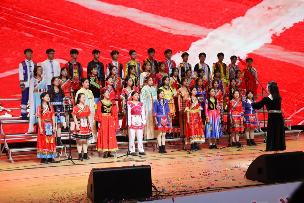 各参赛队伍演唱告一段落,现场热情仍未冷却,音乐学院的师生最后为在场所有观众带来歌曲《领航》,歌唱出对党和民族的热爱,领航新时代方向,为本次合唱大赛画上了圆满的句号。