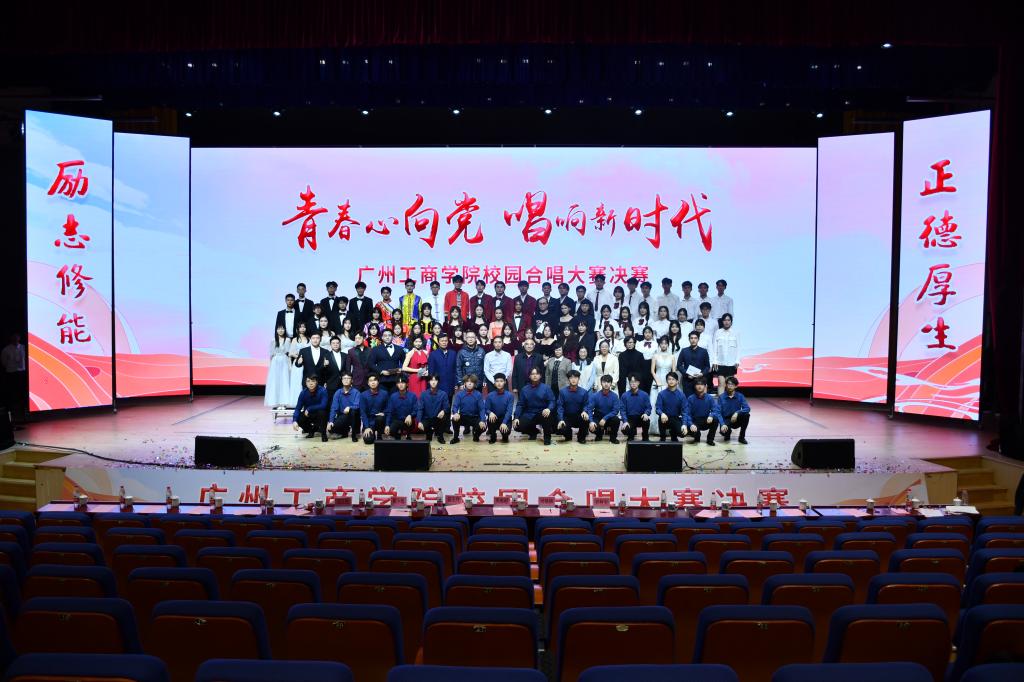 本次合唱大赛历时一个月的初赛与复赛,最终有288名师生组成的6支学院合唱团进入决赛。比赛中,6支学院合唱团的节目精彩纷呈,亮点不断。《我和我的祖国》《唱支山歌给党听》《国家》……一首首经典红色曲目被广工商学子深情演绎,给beat365师生带来了一场精妙绝伦的视听盛宴。会计学院合唱团身着绚丽多姿的民族服饰,深情献唱《唱支山歌给党听》《阿佤人民唱新歌》展现出生生不息的民族韧性;商学院合唱团《我的中国心》道尽对祖国和人民的浓浓深情;国际教育学院二部《东方之珠》歌颂着他们深厚的爱国之情,将新青年的赤子之心表现得淋漓尽致;外语学院合唱团演唱的《我的未来不是梦》,用歌声唱出心中滚烫的梦想,展现出青春无限活力,赢得观众的阵阵掌声。各参赛队伍在合唱的基础上还创新融合了朗诵、舞蹈、乐器等多种表演形式,使得合唱表演耳目一新,颇富观赏性和创新性。