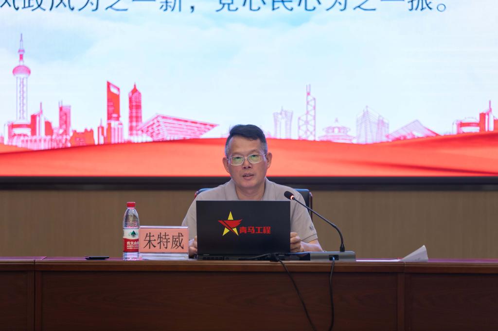 朱特威同志从“学习习近平总书记关于纪律建设的重要论述”“始终把牢全面从严治团的根与魂”等三个方面,以理论+案例的方式,为学校师生党员、入党积极分子、入党发展对象以及青马工程学员等上了一堂生动的党纪学习教育课。他强调:全体师生要全面领会习近平关于党的纪律建设的重要论述,深刻认识开展党纪学习教育的重要性与必要性,做到律己从严、执纪从严,心有敬畏、言有所戒、行有所止;各级团组织要纵深推进全面从严治团,要始终把严明政治纪律和政治规矩放在首位,对照“四铁”标准,争当一名好党员、好团员、好学干,助力学校教育事业高质量发展。