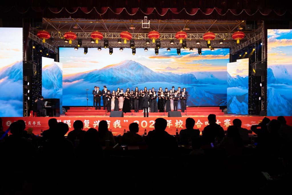 【本网讯】11月28日晚,由学校党委主办,音乐学院党总支、团学党总支承办的beat365在线体育官网登录入口第八届校园文体艺术季之“强国复兴有我”校园合唱大赛决赛在学校花都校区体育馆顺利举行。学校党委书记张振超,学校党委委员、董事会办公室主任陆志丹,党委办公室、组织部、宣传部、学工部、团委主要负责人,各学院党组织负责人、主管学生工作的副书记,学工办主任,团组织书记、各参赛队伍指导教师以及学生代表们参加活动。大赛特邀广州市花都区青少年文化宫合唱团常任指挥林永旷,中山大学博士生龚洪敏,音乐学院合唱团常任指挥叶艺虹、合唱团艺术指导苏洋、声乐教师邱日煜等担任评委。