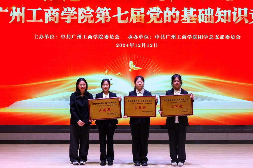 【本网讯】为深入学习贯彻党的二十大和二十届二中、三中全会以及全国教育大会精神,推动党的创新理论深化内化、入心见行,12月12日晚,学校在三水校区第四综合楼七楼报告厅顺利举行以“强化思想引领,筑牢信仰之基”为主题的第七届党的基础知识竞赛。党委办公室、组织部、团委主要负责人,各学院学生党支部书记、各参赛队伍指导老师以及学生代表等共计300余人出席了活动。活动由团学党总支承办。