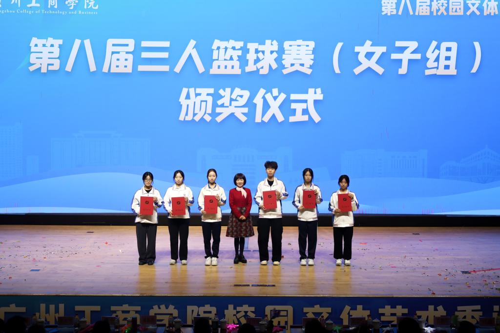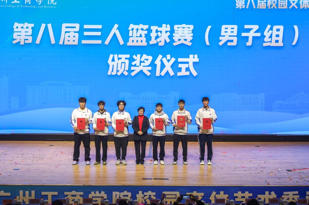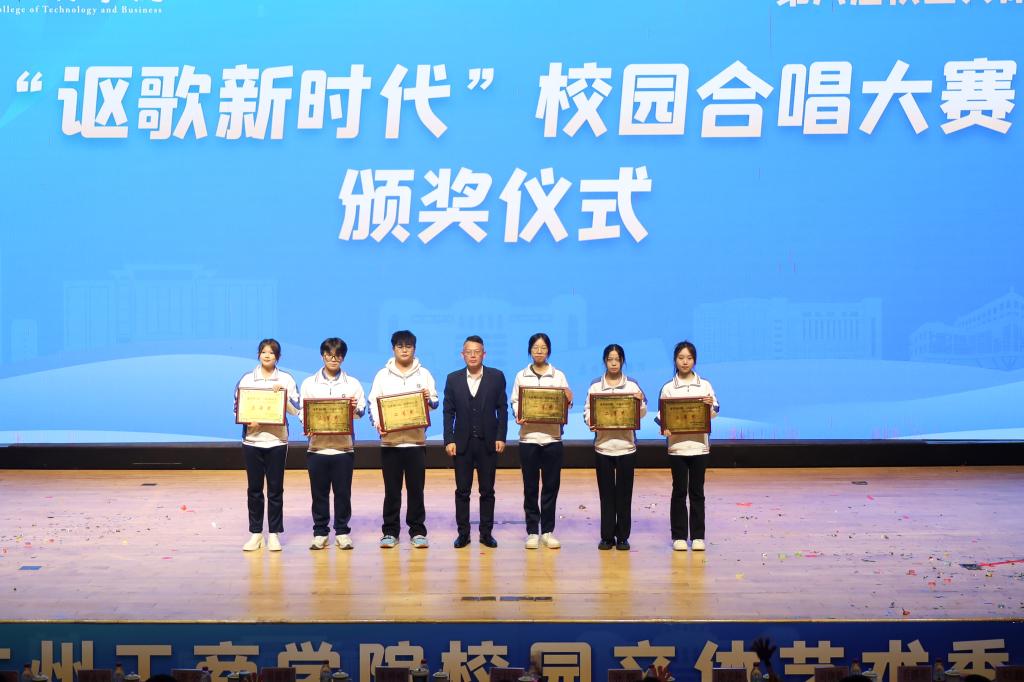 (学校党委委员、董事会办公室主任陆志丹为获奖队伍颁奖)
