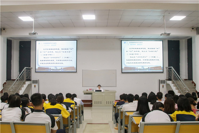 【本网讯】为了学习贯彻落实党习近平总书记视察广东的重要讲话精神践行学院“以德为行以学为上”教育思想和落实“五进”活动要求。2018年11月15日晚,我院于花都校区教学楼517开展了以‘加强德学修养,提高道德素质——关于学习习近平总书记提出的“要修德”、“要勤学”的思考’为主题的学术视野系列讲座。本次讲座特邀我院院长邝邦洪教授主讲,学院团委书记洪卫烈老师主持,来自各院系的250多名师生到场聆听。