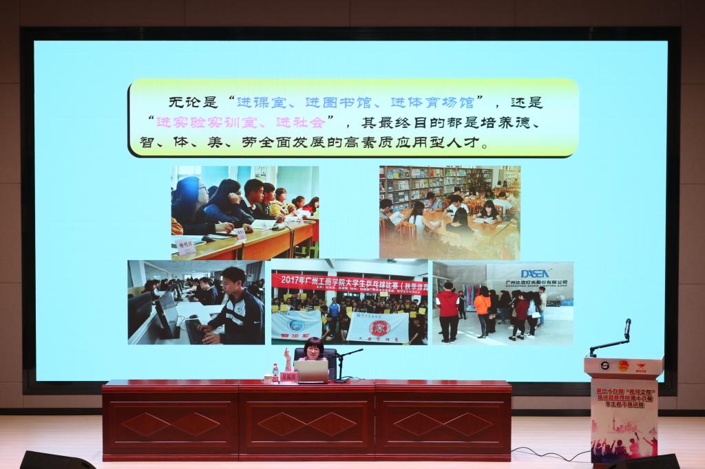 她着重强调了践行“德学五进”对学风建设的意义。她从加强思想教育,加强宣传教育,开展第二课堂活动等方面,提出了建设良好学风的具体措施。她以学校育人项目《德学引领五进育人——民办高校思想政治教育的探索与实践》荣获广东省高等教育教学成果一等奖为例,鞭策师生要正确理解“五进”在学风建设中的作用,以“德学、五进”引领校园文化建设,引领大学生形成正确的世界观、人生观、价值观,培养道德品质高尚、厚植家国情怀、知识结构完善、富有创新精神的人才,全面提高教学质量和人才培养质量。