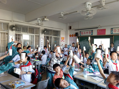 在课堂上,志愿者们通过PPT演示各类不同的情绪表情,让同学有了初步的了解。接着,同学们想象属于自己的情绪表情,并在纸杯上画出。在志愿者们的引导下,同学们通过“情绪纸杯人”的表情绘画方式,掌握了各类情绪的表达方式。