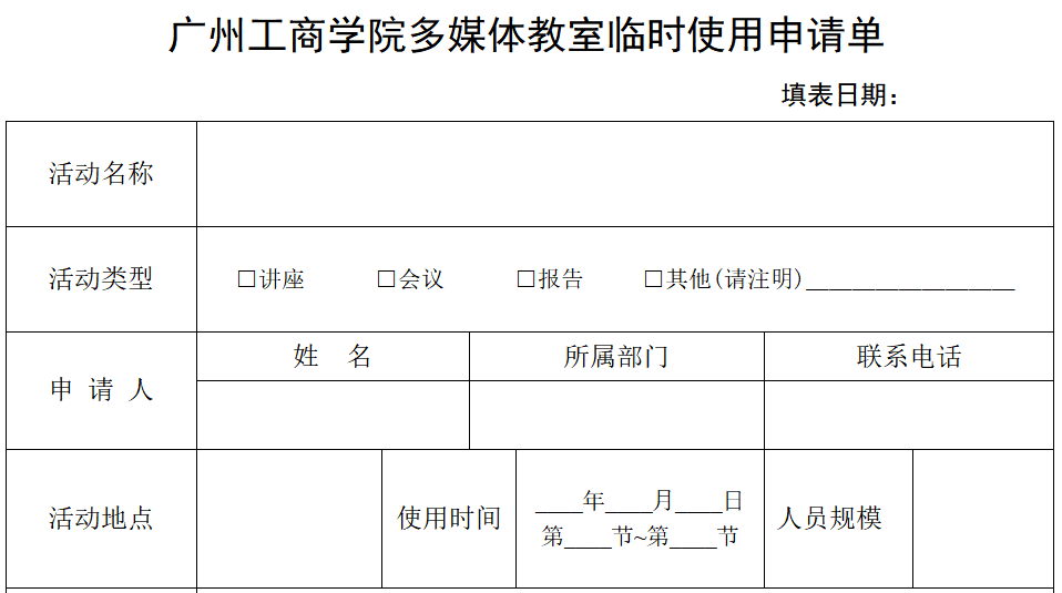 beat365在线体育官网登录入口多媒体教室临时使用申请单
