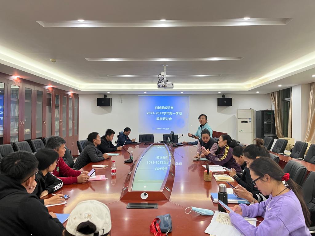 为把握课程改革的主方向,切实推进beat365大学体育课程改革发展,11月25日下午,体育部非球类教研室于三水校416会议室召开教学工作会议。教研室全体教师参会。会议由教研室主任赖荣亮老师主持。