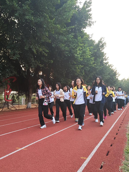 清晨,晨光微露之时,整个校园还处在宁静中,同学们早早来到运动场集合,做了一系列的热身运动之后,晨跑队伍迅速分成四列整齐站立,大家精神抖擞,热情高涨迈出轻盈的步伐向前跑去,无不透露着青春与朝气。
