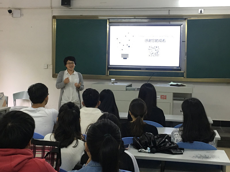 11月30日14:30分,在外语楼305课室达森公司人力资源部陈小姐就达森公司的企业文化、企业竞争力、企业优势及前景等方面为同学们详细的介绍,让同学们对达森公司有了进一步的了解。Leo先生用全英文为同学们讲述了在中东、卡塔尔等地区与外国客户洽谈业务的一些技巧及趣事,也增加了同学们对相关国家文化的了解,拓宽了知识面。企业人力资源总监谭总为同学们讲了人力资源的相关内容,人力资源是为你发掘你的潜能,同时综合你的个人综合实力,安排你到最合适你工作岗位的工作。也激励同学们要时刻保持求职的心态,才能更好的在企业、社会上不断进步。
