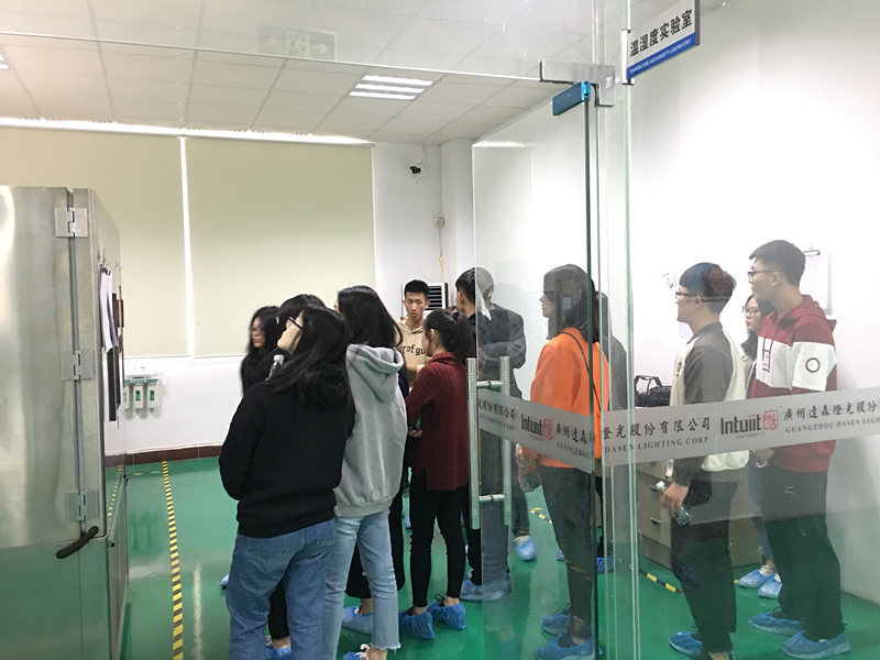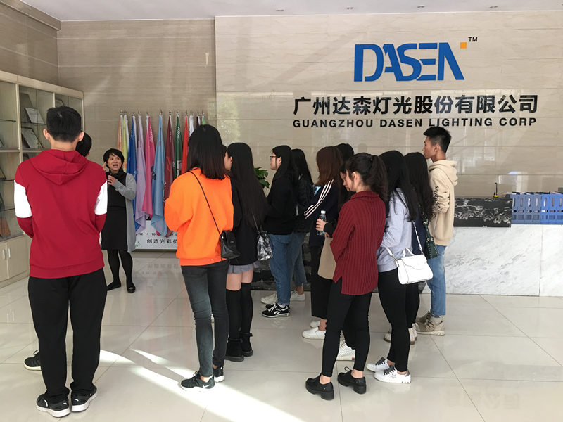 2017年12月6日星期三下午,为了更了解企业和就业方向,外语系15级专科的16位学生在陈钧议老师和马夏芸老师的带领下前往位于花山镇的广州达森灯光有限公司参观。