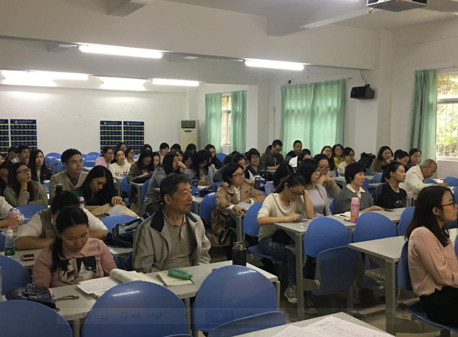 然后,大学英语教研室代表赵卿老师发言。首先,她说道,在昨天的会议上,邵宝华董事长动情地说道:“教育是一项良心工作”,同时,邝邦洪院长也指出:“我们要不忘教育初心,牢固树立以德树人的根本任务。”这实际上是要求我们教师以“润物细无声”的做法,引导学生树立正确的人生观、价值观和世界观,成为新时代合格的国家事业继承者和发扬人。这也意味着我们教师要在真正的教学实践体现“教书育人”原则。其次,结合我们大学英语教研室的具体工作,谈谈大英教研室在教学工作中的成绩:1. 师资队伍。以非艺术类本科教学为例:我们的任课老师中有2位副教授,17位讲师,6位助教;2.教学成绩。开设大学英语四六级培训班,各位老师也在讲课过程中渗透性穿插相关知识的讲解;3.指导学生多次在广东省大学生英语知识竞赛一等奖;4.根据学院的相关规定,在去年和今年开设考研大学英语辅导班。14物流专业的李欢同学报考了厦门大学英语翻译专业的研究生;5.教学方式改革。今年引进了外研社开发的教学App“U校园”,丰富了课堂教学手段,探索了混合教学的新模式。接下来,商务英语专科教研室代表日语专科教研室的教师代表也进行了发言。