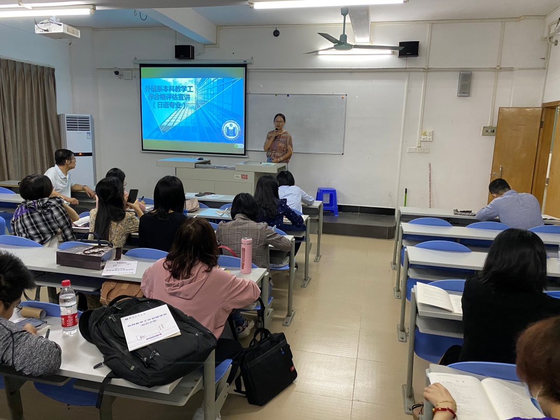 为进一步做好本科合格评估的教学评建工作,发动全体教师积极投入迎评促建工作,日语专业教研室于2020年10月7日在外语楼302教室召开了评估知识宣讲会,全体教师参加会议,会议由林晓卿老师主持。