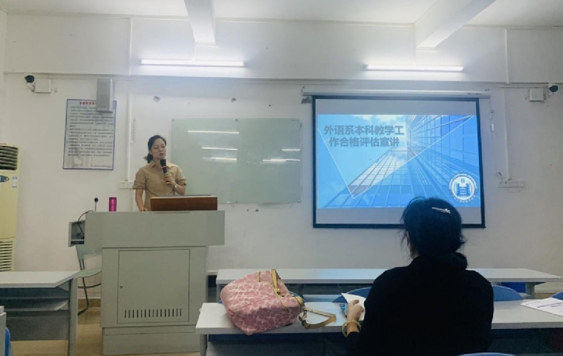 2020年10月7日上午,我系本科教学工作合格评估知识宣讲会在外语楼203室举行。外语系副主任邢佳平主持宣讲会并做了宣讲报告。外语系副主任谢秀珍、各教研室主任、全体专任教师出席了会议。