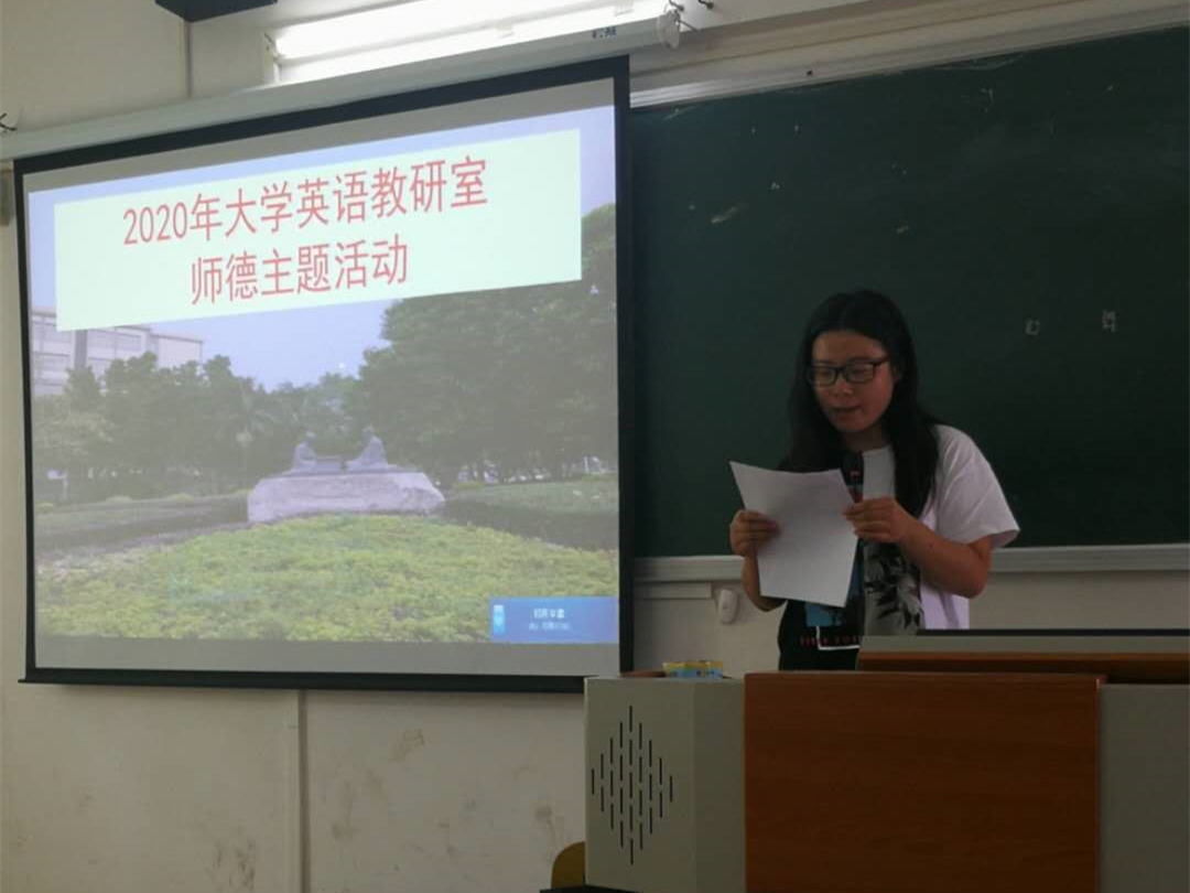 为了贯彻落实《广东省教育厅关于2020年师德建设主题教育月活动的通知》的要求,进一步加强师德师风建设,全面提升教师思想素质和职业道德水平,努力建设一支师德高尚、业务精湛、结构合理、充满活力的高素质专业化创新型教师队伍。按照本次师德建设主题建设活动的指导思想与外语系师德建设活动实施方案,大学英语教研室于10月10日在外语楼503课室,以“淬炼师德师能,践行育人使命”为主题,开展了师德主题教育活动。