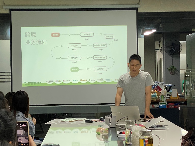 图为刘总为同学们讲解跨境业务流程