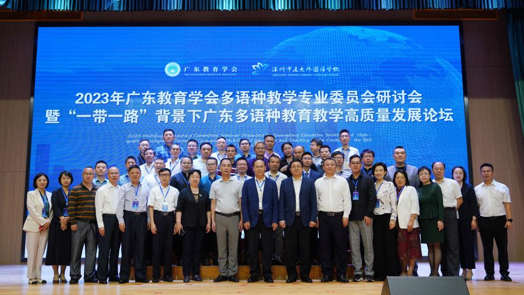 【本网讯】5月13日,“一带一路”倡议十周年之际,广东教育学会多语种教学专业委员会研讨会暨“一带一路”背景下广东多语种教育教学高质量发展论坛在深圳建文外国语学校隆重召开。来自北京外国语大学、华南师范大学、暨南大学、广东外语外贸大学、广州外国语学校、深圳外国语学校等省内外教育单位的500余名教育专家、教授、校长和骨干教师与会。beat365外语学院院长刘沛富教授出席了本次活动并作主题发言。