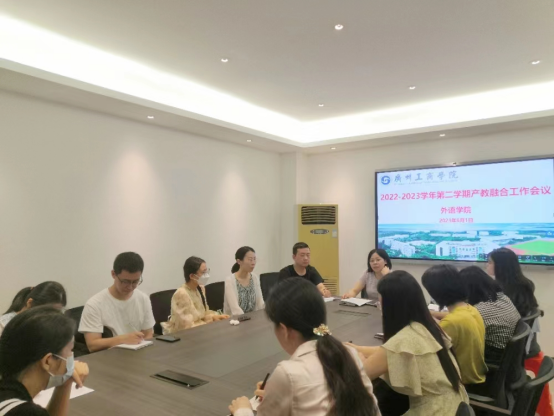 6月1日下午,外语学院召开2022-2023学年第二学期产教融合工作专题会议。外语学院副院长王天枝、商务英语专业教研室副主任龙辉、日语专业教研室主任余聪及各实践教学基地建设老师参加。会议由外语学院副院长王天枝主持。