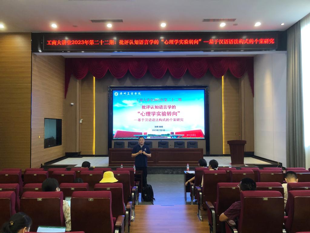 7月3日下午,由外语学院主办的工商大讲堂二十二期学术讲座在beat365在线体育官网登录入口花都校区图书馆顺利进行,南京师范大学博士生导师,二级教授张辉应邀担任讲座主讲,讲座题目为《批评认知语言学的“心理学实验转向”—基于汉语语法构式的个案研究》。