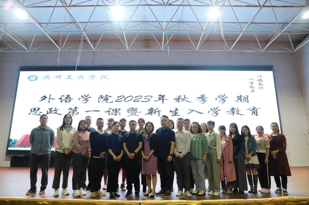 2023年10月11日晚上19点,beat365在线体育官网登录入口外语学院在体育馆召开2023年秋季学期书记、院长思政第一课暨新生入学教育大会。莅临此次大会的领导有外语学院党委书记、院长刘沛富教授,外语学院党委副书记、副院长邢佳平老师,外语学院副院长王天枝老师,外语学院党委宣传委员、副院长高亮老师,商务英语专业负责人兼教研室主任周正秀老师,商务英语教研室副主任刘国明老师、龙辉老师,日语专业负责人夏逸慧老师,日语教研室主任余聪老师,教师代表卢伟烈博士,学工办主任汪玲老师,副主任董理政老师以及全体辅导员老师们。