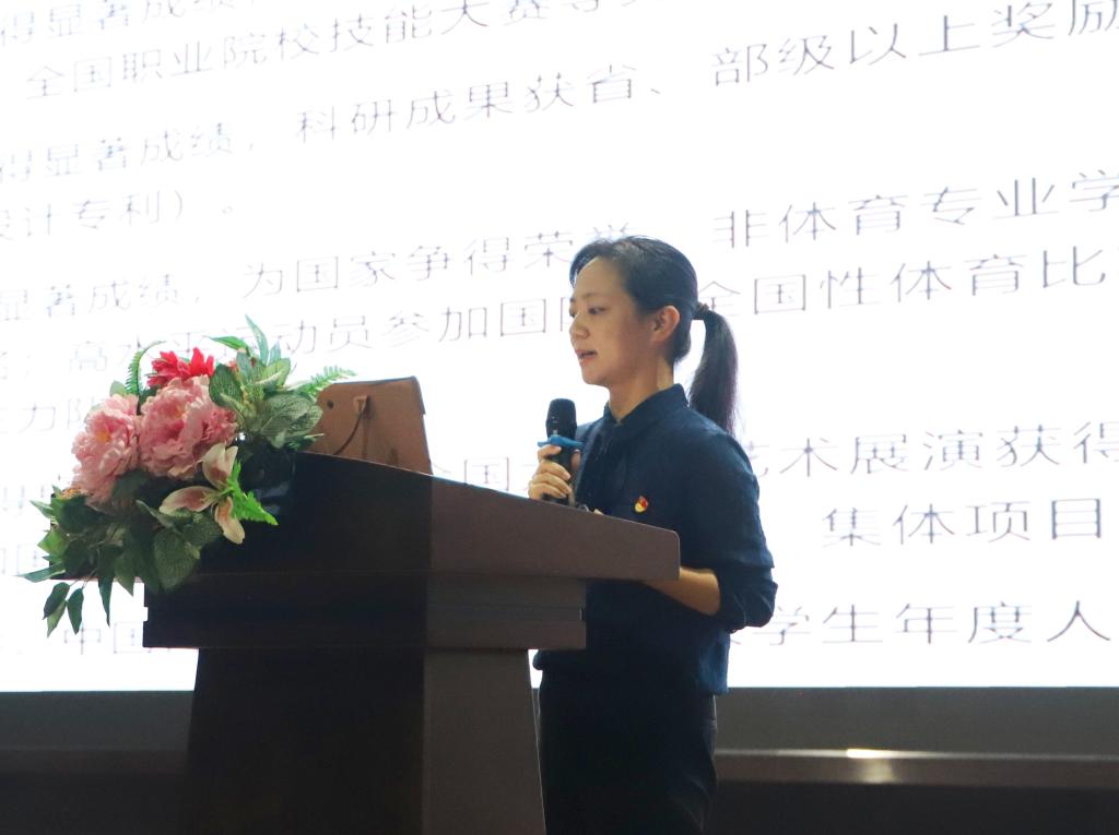 随后会议进入第三个环节,邢佳平副院长为大家带来专题演讲。邢院长首先从国家奖学金看如何做好一名新时代大学生出发,鼓励同学们向国家奖学金标准靠拢,争做有理想、有担当、全面发展的新时代大学生。其次,她对外语学院第二课堂进行了介绍,包括外语学院团学架构以及外语文化节的介绍。最后向同学们做了入党教育,她介绍了中国共产党的基本知识、学校党组织基本情况、党员的角色定位、加入中国共产党的流程等,鼓励同学们要积极向党组织靠拢,刻苦钻研学科知识,多参加学科竞赛、社会实践以及志愿者服务活动。