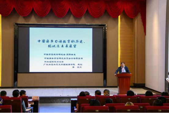 中国社会科学院日本研究所所长杨伯江研究员以“宏观视域下的日本问题研究与日语人才培养”为题,强调了信息筛选与观点表述的优化对国际话语构建的正向传播效应。原天津外国语大学校长修刚教授以“内涵型日语教育改革与经济社会发展”为题,明确内涵型教学内容的重要性。广东外语外贸大学陈多友教授以“数字化时代我国日语教育改革与发展”为题,阐述数字化技术给日语教育带来的挑战和机遇。广东外语外贸大学南国商学院李爱文教授以“中国商务日语教育的历史、现状及未来展望”为题,举出中国商务日语的跨越式发展及亟待解决的问题。原中国教育部中国教育国际交流协会常务理事林佐平博士以“公共外交的光和影——对教育外交的观察与思考”为题,详细解读党的二十大报告中教育与外交工作的相关内容。广东外语外贸大学杨晓辉教授以“东方智慧:传统日本文化对生态批评的理论构建贡献”为题,介绍生态批评在日本文学中的作用。