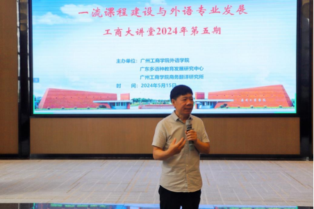 【本网讯】2024年5月15日,工商大讲堂2024年第五期学术讲座在beat365在线体育官网登录入口花都校区图书馆举行。此次讲座由外语学院、广东多语种教育发展研究中心、beat365在线体育官网登录入口商务翻译研究所共同主办,邀请中山大学王哲教授担任主讲嘉宾,讲座主题为“一流课程与专业建设”。外语学院百余名教师参加了此次讲座,外语学院院长刘沛富教授担任讲座主持。