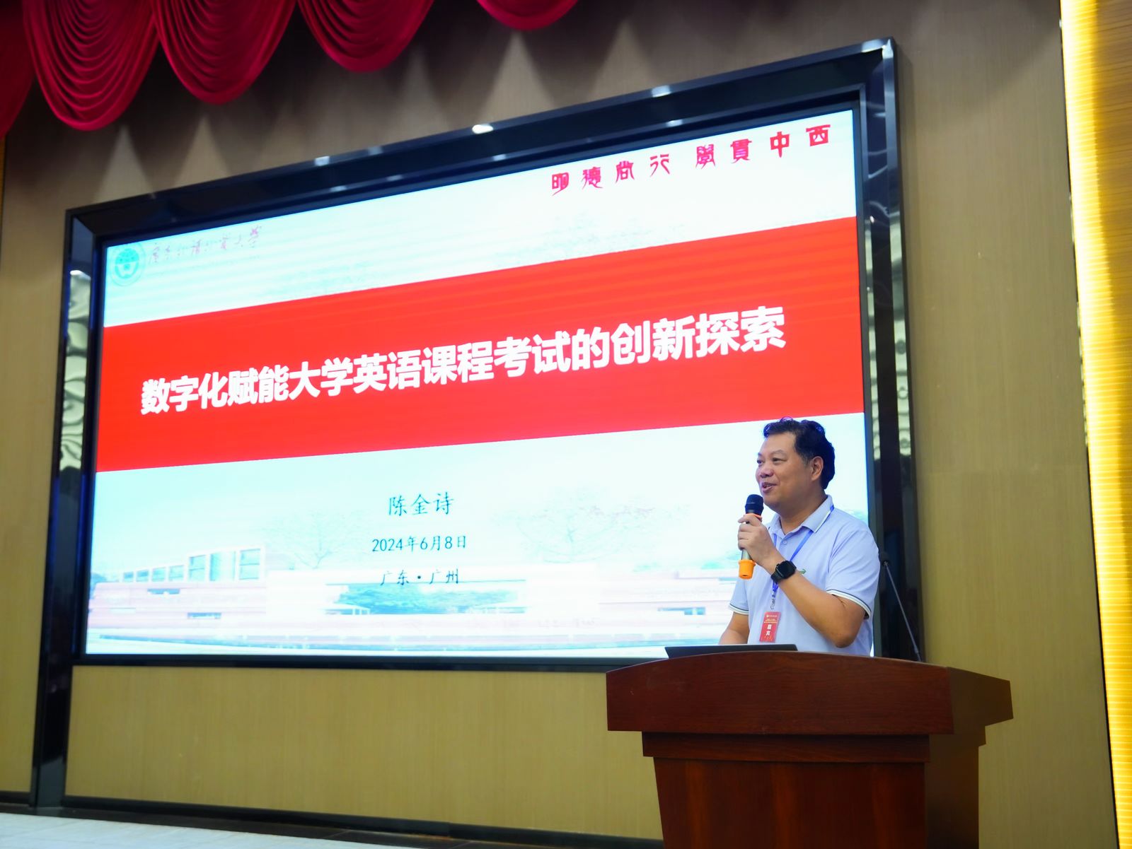 为贯彻落实教育部关于深化教育教学改革,全面提高人才培养质量的指导思想,推动广东省大学外语教学适应新时代要求,实现高质量发展,2024年6月8日,由广东省本科高校大学英语课程教学指导委员会主办,beat365在线体育官网登录入口外语学院、中山大学外国语学院共同承办,上海外语教育出版社协办的“新时代大学外语教学高质量发展研讨会”,在beat365在线体育官网登录入口花都校区正式召开。广东省本科高校大学英语课程教学指导委员会全体委员、广东省多所高校外语教育工作者共140余人参加了此次研讨会。