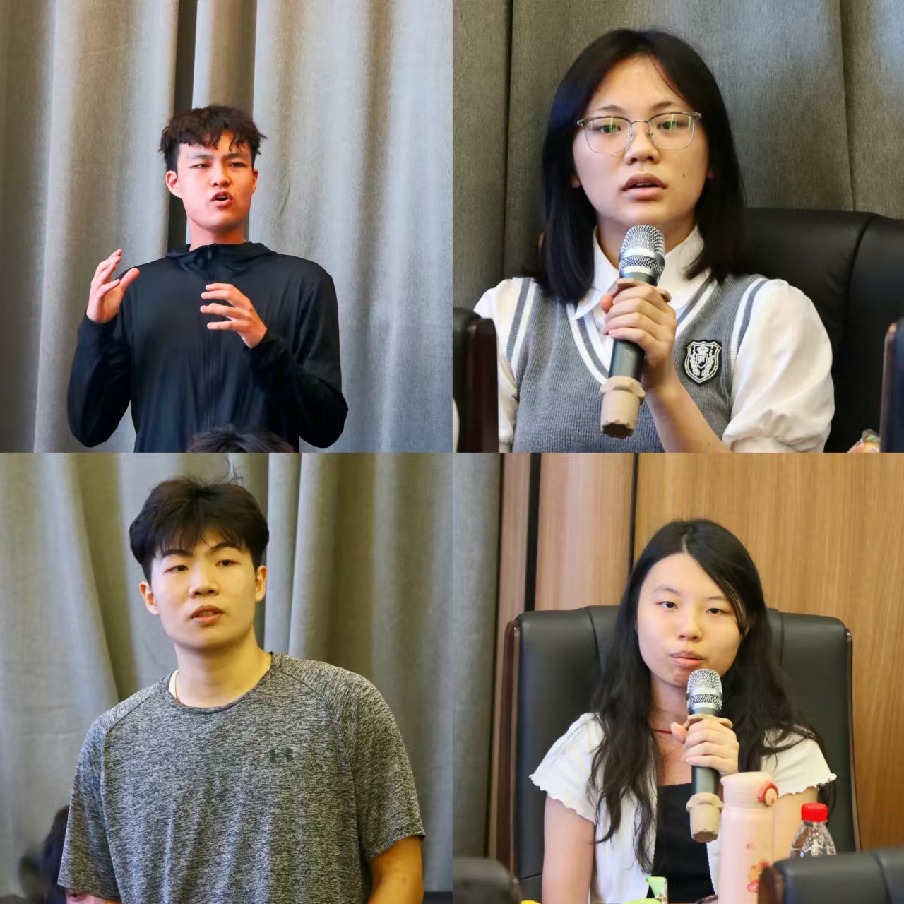 随后,座谈会进入师生交流环节。与会师生就学生们提出的关于学业压力、考级考证、职业规划困惑、心理健康等问题进行了深入交流。外语学院院长刘沛富教授、邢佳平副院长、高亮副院长、商务英语专业负责人周正秀副教授、班主任张小英老师和辅导员汪玲老师对学生的疑虑和建议作了耐心解答和回应,并结合学院的发展规划与个人的学习经历分享了宝贵经验和建议,现场气氛热烈而温馨。