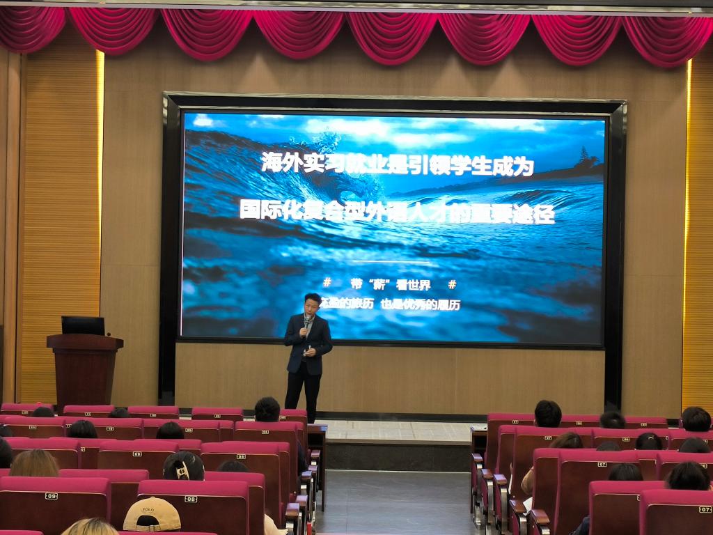 2024年11月14日下午,一场别开生面的海外实习就业招聘宣讲会在图书馆415报告厅成功举办。此次宣讲会由清宜国际集团主办,阿联酋迪拜国际机场免税店作为招聘方,吸引了众多怀揣国际梦想的学子前来参加。清宜国际集团经理陈集宏亲自挂帅,担任主讲人,为学生们带来了一场关于迪拜国际机场免税店实习就业的精彩分享。