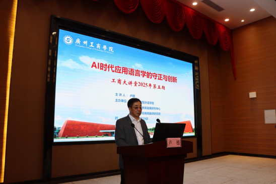 【本网讯】3月19日,工商大讲堂2025年第五期学术讲座在beat365在线体育官网登录入口花都校区隆重举办。本次讲座由外语学院、广东多语种教育发展研究中心以及beat365在线体育官网登录入口商务翻译研究所联合主办,并邀请到广东外语外贸大学卢植教授担任主讲嘉宾。本次讲座的主题为《AI时代应用语言学的守正与创新》。外语学院商务英语专业负责人周正秀副教授主持活动,逾百名教师参与了讲座。