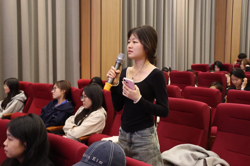 在问答环节,学生们围绕跨文化实践中的困惑积极提问。武波教授以丰富的外交案例为引,指出微笑与倾听是跨越文化障碍的通用礼仪,鼓励学生以“容错心态”面对文化差异,既要尊重对方习惯,又要保持文化自信。针对文化传播问题,他提出应通过恰当的语境转化展现中国文化特色,同时在数字平台注意规避敏感话题。