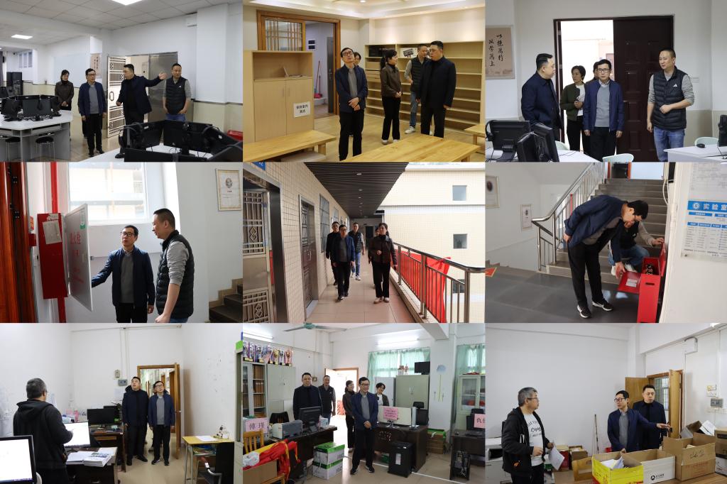 【本网讯】为切实做好寒假期间学院安全管理工作,全面排查消除各类安全隐患,1月16日,外语学院党委书记、院长刘沛富教授带队,携学院党政领导班子成员对外语楼开展放假前安全检查,重点覆盖教研室、行政办公室、多媒体教室、实训室等场所,确保假期校园环境安全稳定、教学设施运行可靠。