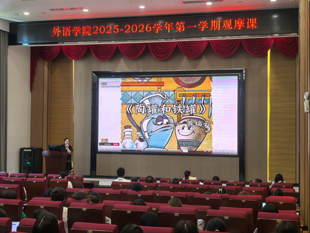 为进一步促进教师专业能力成长、提升教育教学质量,并构建教师互动交流、协同研讨与成果展示的共享平台,外语学院于2025年11月6日下午在图书馆415报告厅举行了本学期首场教学公开示范课,外语学院全体教师共同参与本次示范课。