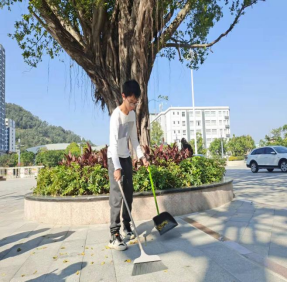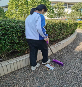 活动伊始,同学们带着扫把、畚斗等清洁工具在指定地点静候老师的安排,参与活动的人员被分成五个小组,分别由每组的组长带领同学们到相应地点进行清洁。活动中,同学们始终保持高涨的劳动热情,认真细致地打扫每一块区域,捡起地上的垃圾和干枯树枝、清理草坪边缘的杂草、清洁楼道等,细微处见真情,这无不彰显着同学们对校园环境的精心爱护,从此形成一种良好的行为习惯。同学们在忙碌之余还不忘给对方留下一张张可爱的照片,记录着这充实而又快乐的短暂时光。