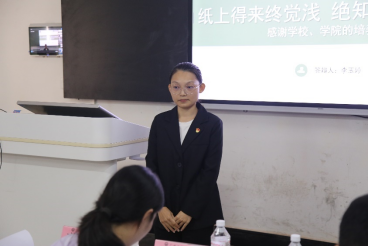 主持人朱厚霖同学简要介绍评审要求和答辩顺序后,答辩正式开始。每位候选人按照答辩顺序,结合上一学年个人在各方面的综合表现,依次进行了5分钟精彩的答辩陈述。作为国家奖学金候选人,同学们不但学习成绩在年级名列前茅,而且在思想品德、学科竞赛、社会实践、文体活动等各方面全面发展,收获累累硕果,充分展示了个人的成长收获和外语学院学子的精神风采。