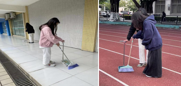 同学们分工合作,配合默契。校园的主干道上,他们挥动扫帚,清扫着落叶、纸屑和灰尘,他们的身影在阳光下忙碌穿梭,所到之处,留下一片明亮与洁净;花坛边,另一组同学们弯下腰,仔细捡拾隐藏在花丛中的纸屑等杂物,认真细致地清理每一个卫生角落;不一会儿,道路焕然一新,花坛整洁干净,给大家带来了视觉上的享受与心灵上的愉悦,同时为同学们创造了一个良好的学习环境。