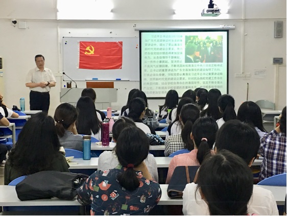 2018年5月10日下午3时,在花都校区外语楼202课室,学院党委书记钟伟强同志为外语系师生党员做了以题为“加强学习,增强党性,努力做一名合格的党员和党务干部”的报告会。外语系的党务干部及党员教师、学生参加了本次报告会。