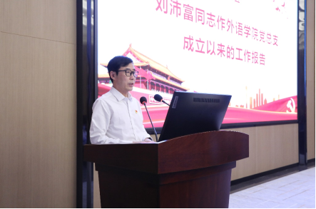 外语学院党委书记刘沛富同志围绕上一届党总支的主要工作回顾、存在的问题、未来工作思路等方面内容,向大会作外语学院党总支工作报告。
