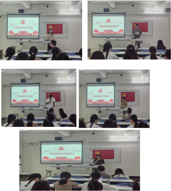 接着,外语学院学生第四党支部所有党员同志逐一发言并作自我批评。每位同志都认真作了自我批评,开展批评与自我批评,既实事求是、坚持原则,又不遮不掩、开门见山。聚焦问题准确、剖析原因深刻、整改措施明确,进一步统一了思想、凝聚了共识。同志们总结了自己上半年的思想、学习、工作等方面的情况。大家纷纷表示,在今后的日子里,要进一步加强政治理论学习,提高思想政治素质。加强党性修养,全心全意为人民服务。
