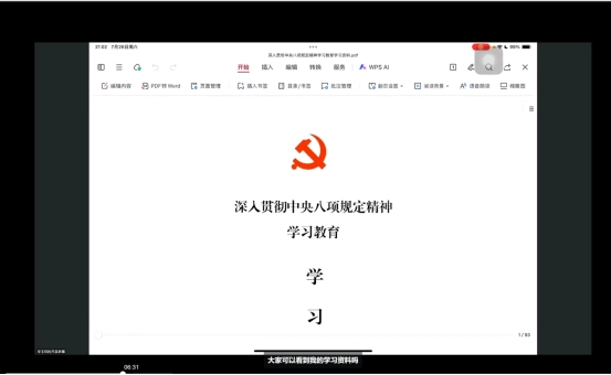 为持续深化党风廉政建设,进一步强化党员干部的纪律意识和规矩意识,外语学院学生第三党支部于7月26日在线上(腾讯会议)开展了“深入贯彻中央八项规定精神学习教育”总结研讨主题党日活动。活动通过专题学习、交流研讨等形式,推动中央八项规定精神在支部落地生根,筑牢党员干部廉洁自律思想防线。