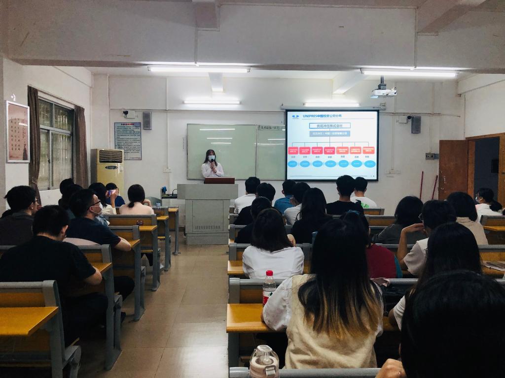 广州优尼精密有限公司(日本独资),成立于2009年11月,位于广州市花都区花港大道77号。主要生产汽车变速箱关键零部件。公司发展机制健全,薪酬体系合理。本次主要是面向18级毕业生招聘行政管理实习生。会上同学们积极与公司人员互动,就自己关心的问题进行提问。