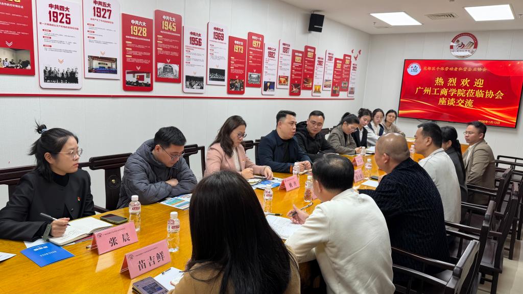 【本网讯】为深入贯彻落实高校高质量充分就业工作要求,外语学院坚持以“党建引领促就业、校企协同育人才”为抓手,聚焦党务专员等岗位需求对接,进一步拓展学生就业渠道,推动校企党建共建与产教融合同向发力、协同提质,2026年1月13日,外语学院党委委员、副院长高亮副教授带队赴广州市花都区个体劳动者私营企业协会开展“访企拓岗促就业”专项行动。学校机关党委副书记姚丹、就业指导中心张晨老师随行指导,外语学院党委委员及师生党员代表共同参加。