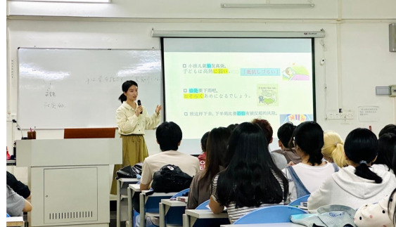 李甜老师用图片、视频等多种形式,使用生动有趣且精美的课件生动形象地为学生讲解翻译、语法和容易混淆的词汇,有助于学生系统掌握抽象的日语词汇和语法并将其运用于翻译中。同时,引导学生翻译较难的句子时,注意传授日本本土化表达,有助于学生掌握更地道的日语。